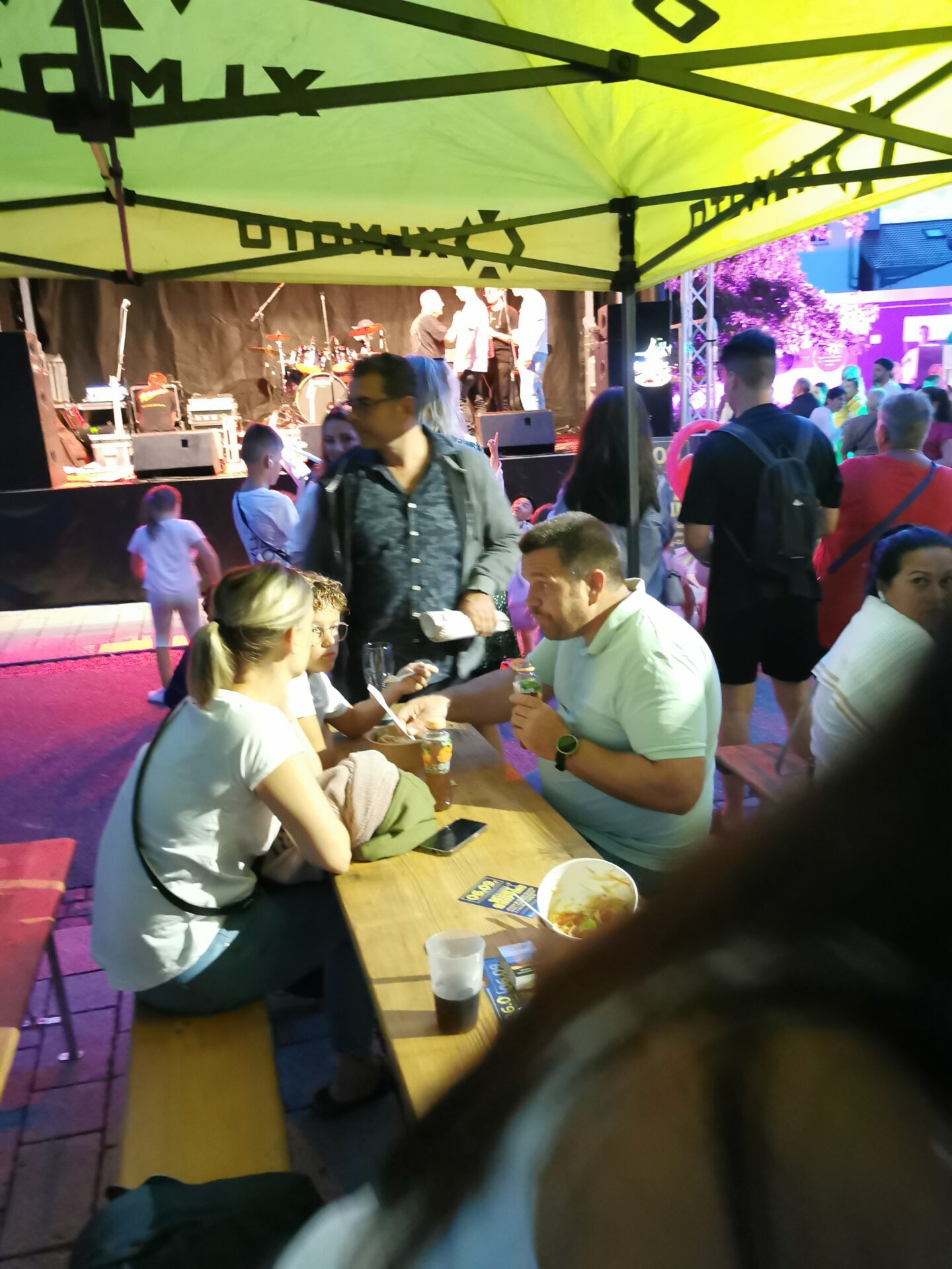 - Für Kinder steht hinter der Bühne ein Hüpfburg-Bereich zum ausgelassenen Spielen bereit.